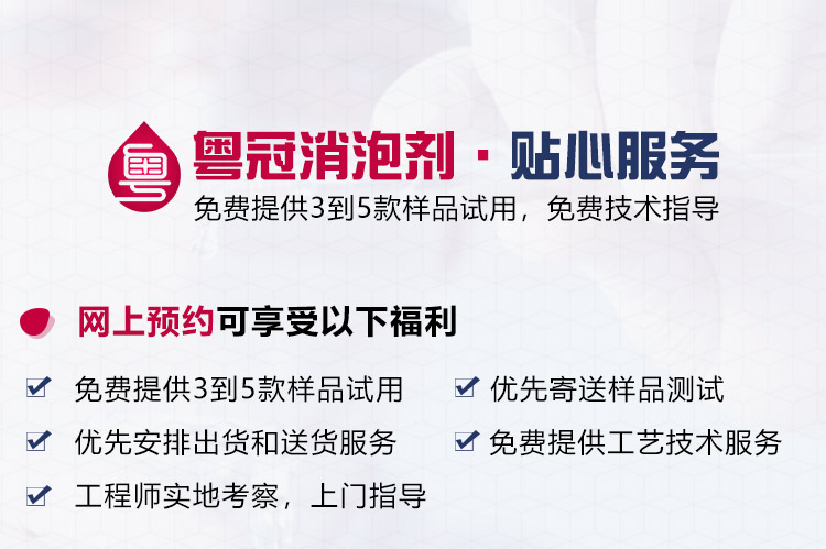 • 免費(fèi)提供3到5款消泡劑樣品試用,滿意再購買